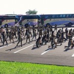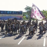 修学旅行の最終日である本日、生徒や先生方もよさこい踊りを諦めきれず、観客がいなくても5日間、お世話になった網走バスの運転手さん!バスガイドさんへ感謝の気持ちを込めて・・・とのことで当公園内南駐車場で東京へ飛行機で帰る前に、よさこい踊りを披露してくれました。おそらく最終日で生徒たちも疲れが出てきているはずなのに、よさこいの音楽が始まると、みんないい顔をして全力で踊っていました。感謝の気持ちは120%感じましたよ(^-^) 観客の中で踊りを披露することができませんでしたが、踊り終わったあと全員が、モヤモヤしていたものをすべて吐き出し、すっきりしていた顔が印象的でした。先生方、添乗員さん、本当にお疲れさまでした。何かと不自由をお掛けし申し訳ありませんでした。是非、来年は晴天の中でよさこい披露が出来ることを期待します。